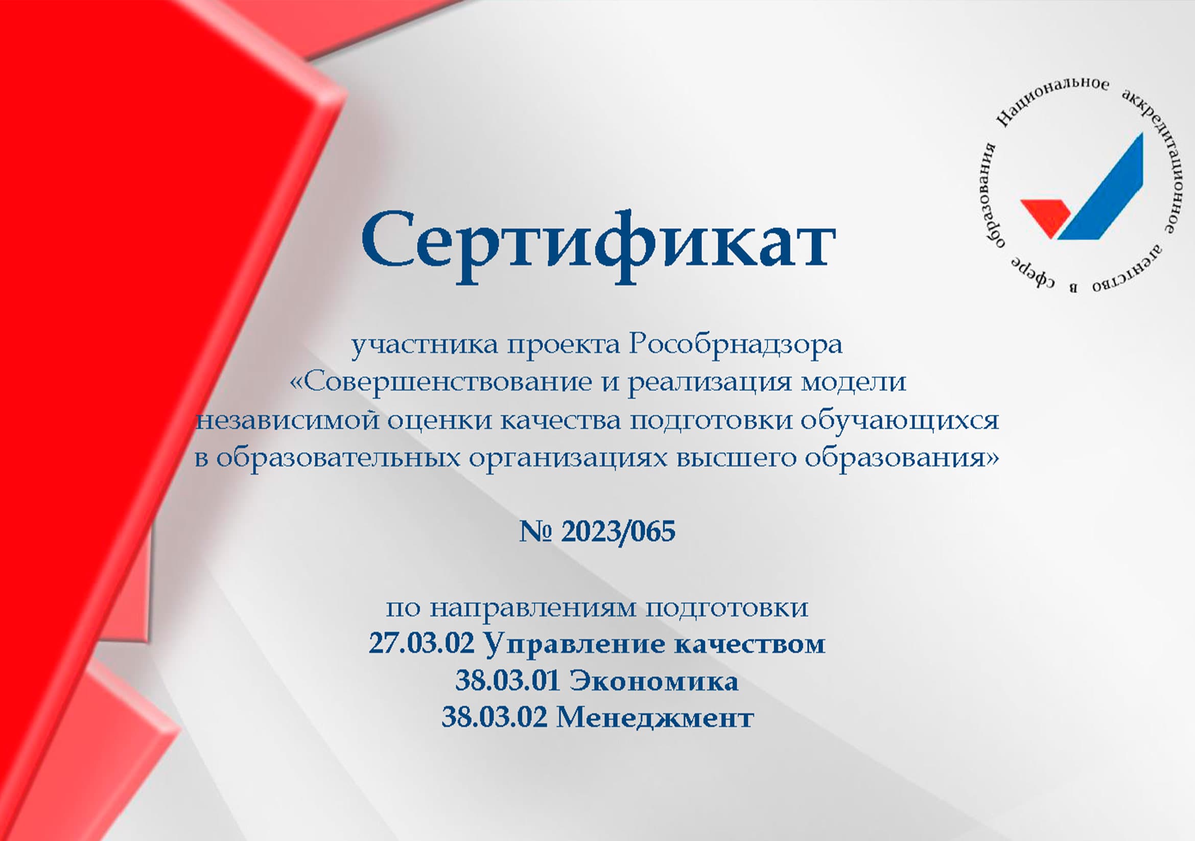 Качество образовательной деятельности и подготовки обучающихся по образовательным программам высшего образования университета определяется, в том числе, в рамках системы внешней оценки, в которой университет принимает участие на добровольной основе.