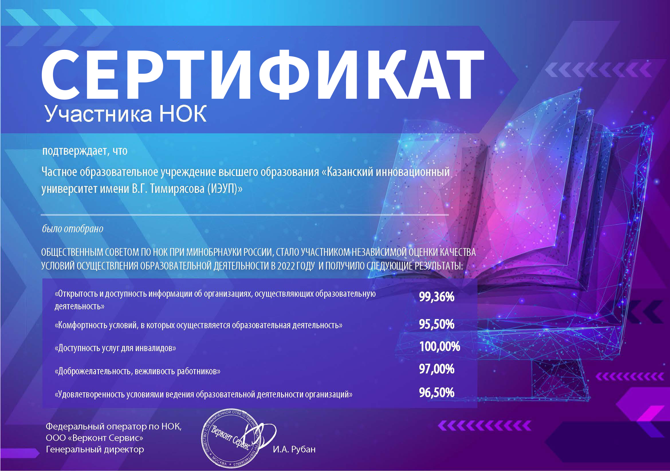 Качество образовательной деятельности и подготовки обучающихся по образовательным программам высшего образования всех уровней подготовки и форм обучения, реализуемым ЧОУ ВО Казанским инновационным университетом, определяется в рамках системы внутренней оценки.