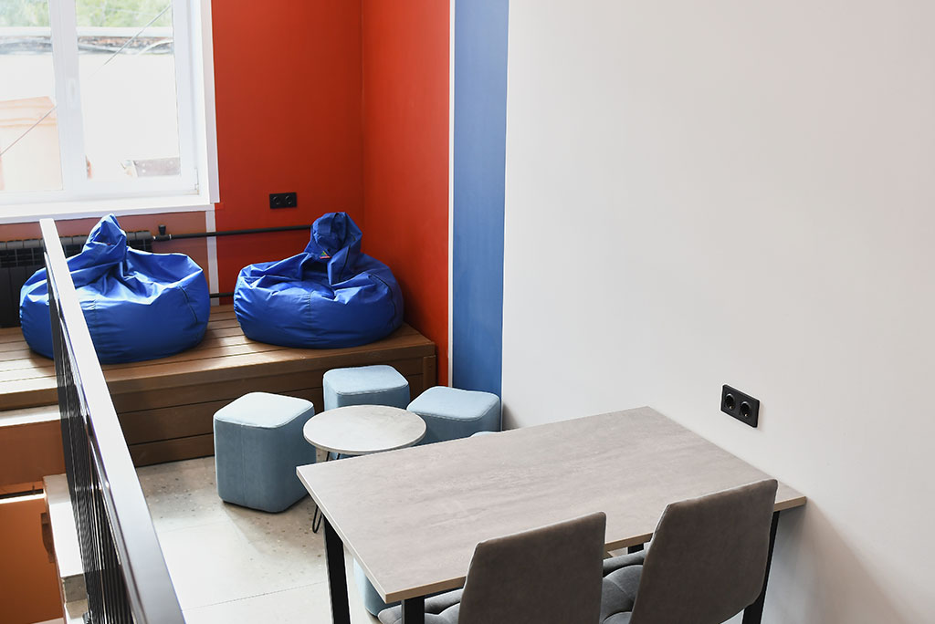 Комплектация комнат: двухъярусные и одноярусные кровати, матрац, шкаф для одежды, письменный стол, стулья.